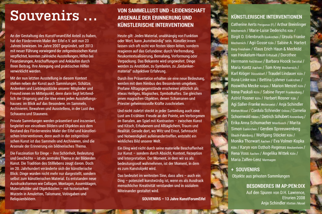 Dabei ist das Atelier mehr als nur eine Werkstatt, es ist für mich eine Stätte der Begegnungen. So veranstalte ich Lesungen sowie besondere Events und arbeite z.B. auch mit Kindern an kleinen Kunstwerken.